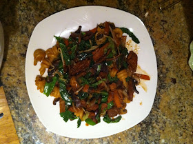 In the evening we had a stir fry. Just a tub of stir fry ready made from the supermarket, which we bulked out with a few more mushrooms. We used pork tenderloin this time, rather than beef or chicken. I know we slightly deviated from our white meat only week, but I quite fancied pork. The tenderloin is very cheap, and goes a long way, it is also perfect for a stirfry. The recipe has been done before, and the result was perfect. So filling, I couldn't eat all of it either!