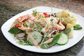 The weather was keeping us in, so we retired to the kitchen to play with some ingredients. We used a courgette to garnish, together with some rocket on the side. The dish was a lot easier than it seems, just a bit time consuming (but we enjoyed the challenge). A lot of the prep was done in the afternoon. We also changed the amount of olive oil used - to cut down the number of calories. While we love olive oil, we thought we would restrain ourselves a little (especially after last night's extravaganza). OK so we pushed the boat out this time, but it's what we enjoy now and again!