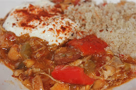 Here's the recipe for this spicy dish (I swapped the 700g of lamb for 6 chicken thighs then added 50g of sliced chorizo). I finished it with some couscous - although I rarely eat this, I wanted to try some BARLEY COUSCOUS as I'd never eaten it before. It's supposed to be more nutty, and that's exactly what I thought. A spoonful of cooling yoghurt and a sprinkle of smoked paprika finished the dish nicely. At around 500 calories - this was a great evening meal for me and the couscous was very nice.