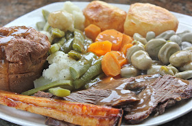 Our beef roast dinner was delicious - with roast and steamed vegetables. We made our own gravy from the pan juices (after removing most of the fat). This was so filling and we estimate between 700 and 800 calories.