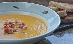 Here's my easy carrot and lentil soup. I had this the other day, it was delicious. I added some chopped crispy bacon bits to make it more filling, and we each ate a couple of slices of toasted bread. (Literally grate 600g carrot, add 150g red lentils, cover ingredients with stock and 200ml of milk, sprinkle in chilli flakes (and any other warm spices you fancy) season and cook.  Season with salt and pepper, then blend and test seasoning again.)