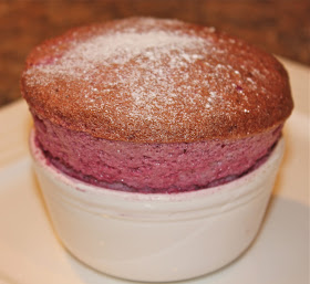 After looking for online recipes, we took an average of all of them. We think the secret is to get the egg whites very stiff. Then mix a third of the egg whites into the blackberry mixture, and then fold in the rest. Try to knock out as little air as possible.