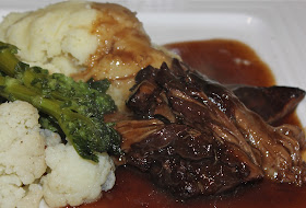 Tomorrow we're going to make a steak and ale pie. I've been wanting to make one for ages, ever since I saw a recipe for pastry made with suet. So I'll put the recipe up later. For now though, we'll throw the shin of beef into the slow cooker, cover with ale and let that cook overnight.