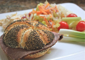 This beef roll was under 300 calories. Some people think you have to give up bread in order to lose weight, but we've always eaten it throughout our weight loss.